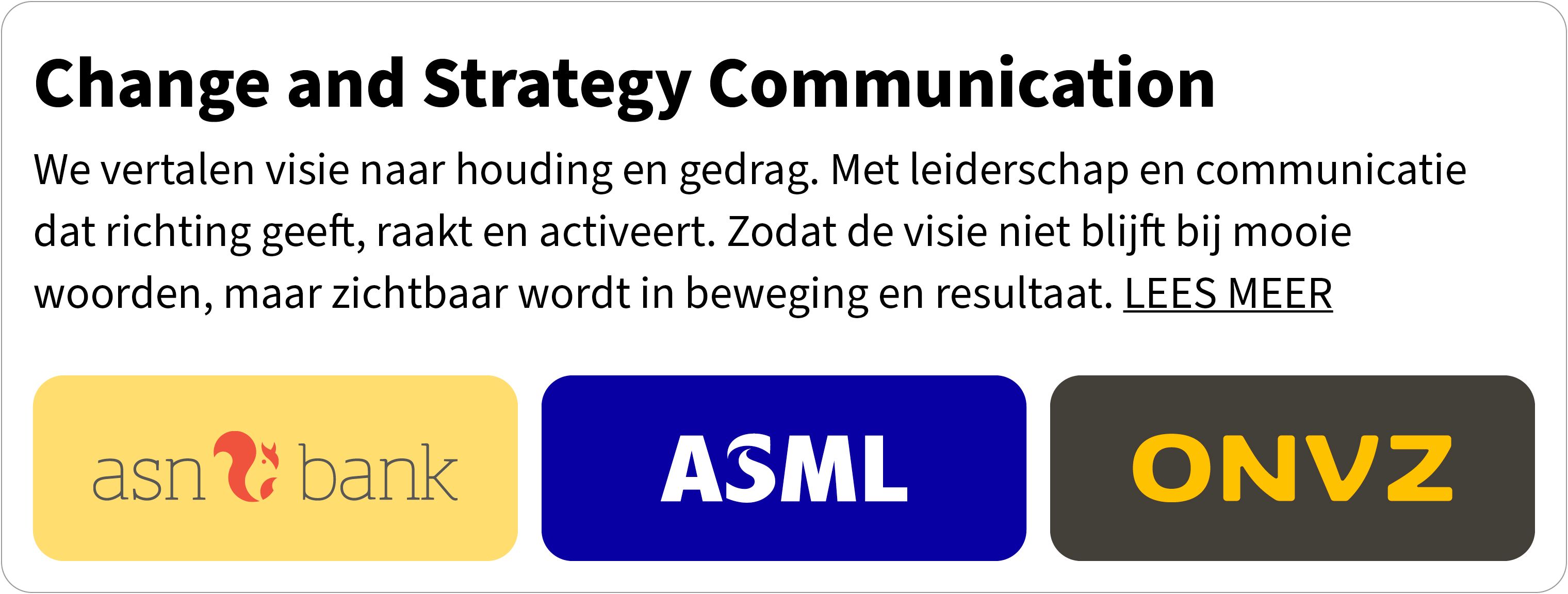 PROOF werkt vrijwel altijd in complexe transities, waarin strategie, leiderschap, communicatie, HR en technologie elkaar raken. Vanuit vertrouwelijkheid kunnen wij de details van onze opdrachten niet uitgebreid beschrijven op onze website. Hieronder laten we wel zien, voor welke type strategische vraagstukken organisaties PROOF inschakelen. En hoe wij in hoofdlijnenhelpen deze vraagstukken aanpakken. De voorbeelden hieronder geven een beeld van de context waarin wij werken en de rollen die wij daarin vervullen als strategisch partner.